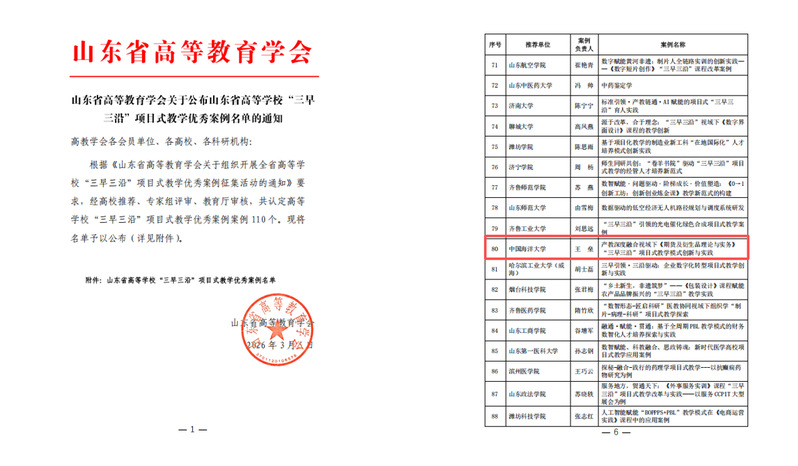 喜报!我院案例入选山东省高等学校“三早三沿”项目式教学优秀案例