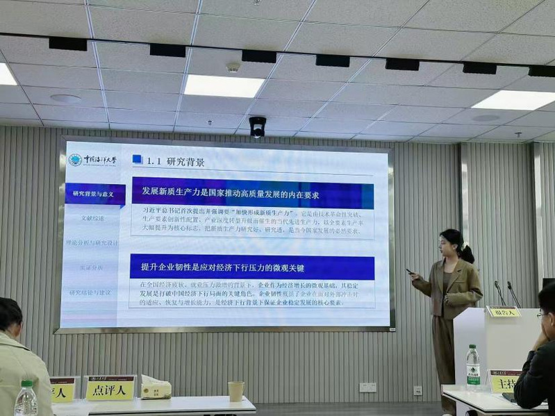 在答辩与交流环节中,专家学者对团队的研究思路与实证设计给予了高度肯定,并提出了宝贵建议,鼓励同学们进一步突破传统面板数据方法的局限,引入更丰富的分析工具和微观调研数据,持续深化对涉海企业韧性机制的研究。团队成员表示,此次论坛经历极大拓宽了学术视野,提升了问题意识与科研能力,也让她们更加明确了金融学科服务海洋经济高质量发展的使命与路径。