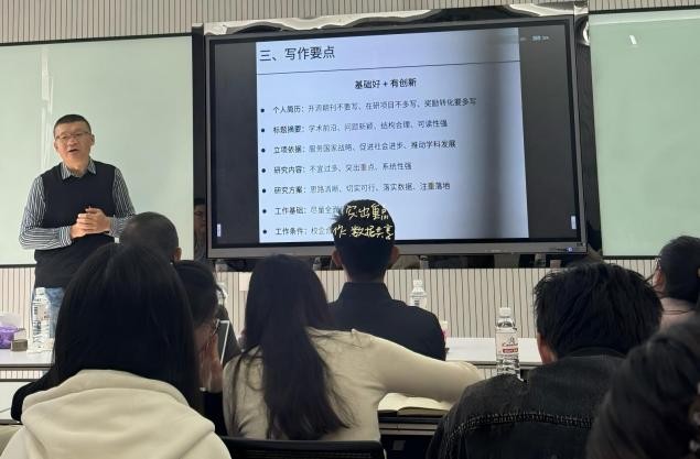 北京理工大学李想教授以“国家自然科学基金项目申请经验分享”为题,从自身评审与主持经验出发,阐述了“基础好+有创新”的申报原则,强调了选题前沿性、计划合理性与团队协作在项目申请中的关键作用。