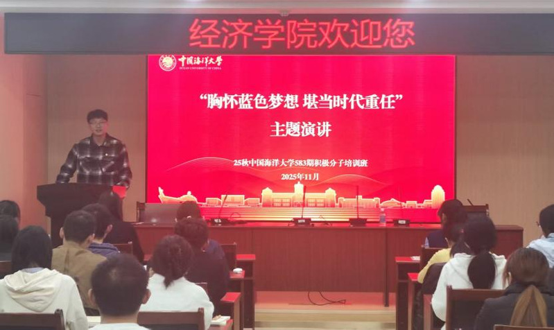 11月7日下午,中国海洋大学第583期入党积极分子培训班“胸怀蓝色梦想,堪当时代重任”主题演讲比赛在经济学院117教室成功举行。经济学院专职辅导员张家旺、兼职辅导员孙一飞出席本次活动。主题汇报展示由经济学院助管郭益嘉主持。