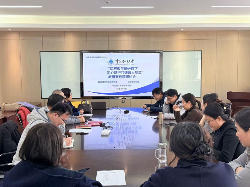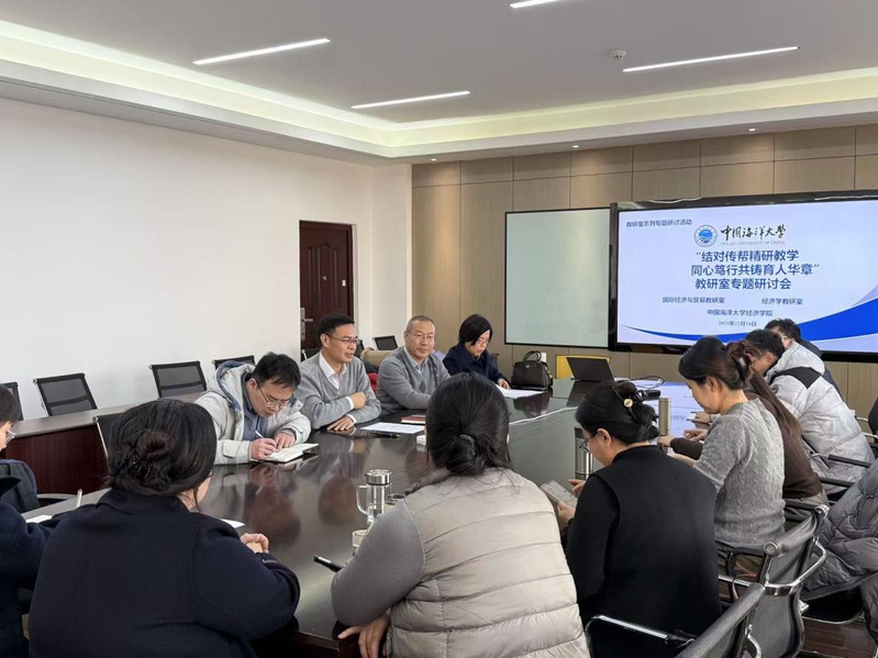 为深入落实我校《2025年春季学期本科教学督导工作纪要(51)》《本科教育教学审核评估整改教学档案专项检查专家组工作报告》等文件要求,切实加强课堂教学、毕业论文指导、试题命题与归档等关键环节的规范管理,全面提升教研室教师教学能力与育人实效,经济学院国际经济与贸易系国际经济与贸易教研室与经济学教研室于2025年12月18日下午在学院324会议室联合召开了“结对传帮精研教学·同心笃行共铸育人华章”专题研讨会。本次活动由国际经济与贸易教研室主任黄友星教授主持,国际经济与贸易系副主任、经济学教研室主任汪克亮教授、国际经济与贸易系副主任李晨教授、何一鸣教授、付秀梅教授、赵艳平教授等10余名教研室老中青年教师参会。