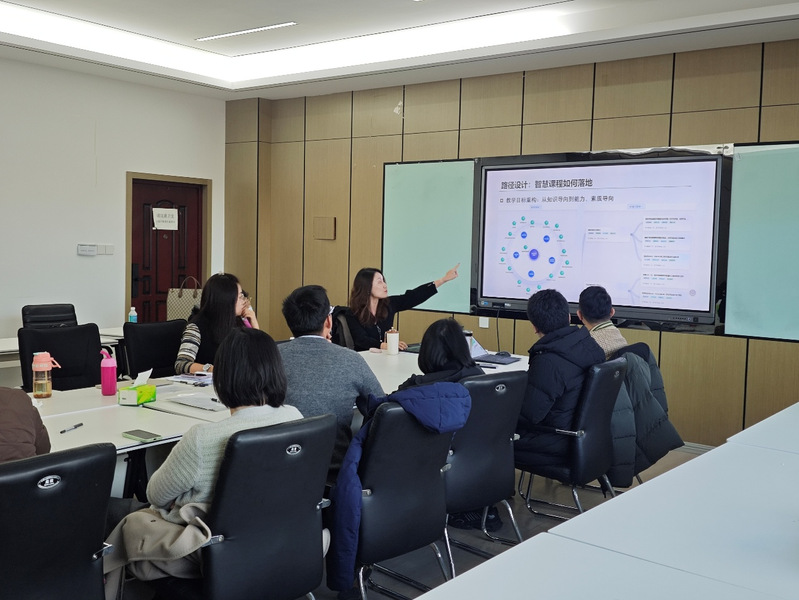 会上,郭晶老师围绕智慧课程建设核心要点展开系统分享。她指出,数智技术重塑了学习方式与课堂边界,智慧课程建设并非单纯的技术叠加,而是要重构教学目标、流程与学习方式,推动教学目标从知识导向转向能力与素质导向,同时以学习场景、学习链与任务驱动规划教学方向。她强调,AI技术是教学决策与反馈优化的辅助工具,已充分嵌入智能备课、智能批改等数智工具服务课堂。智慧课程建设应推动教学模式向个性化、非线性学习转变,开发颗粒化微资源,从“平台驱动”转向“教学场景驱动”,破解千课一面问题,提升教学生成力与学生参与感。